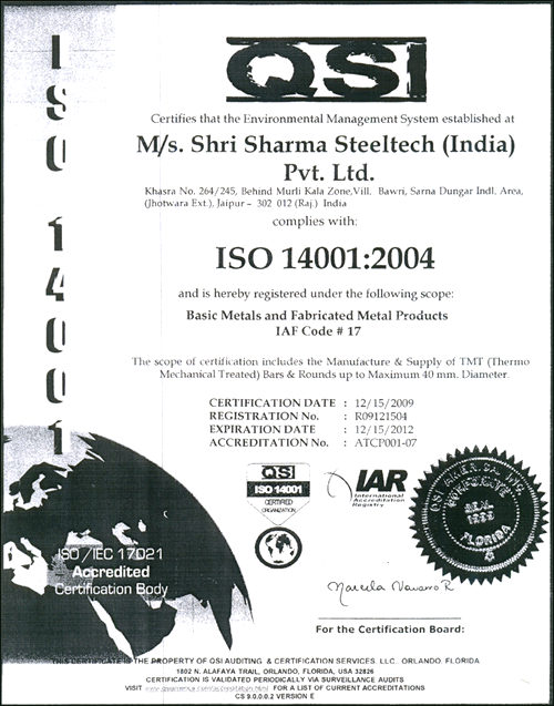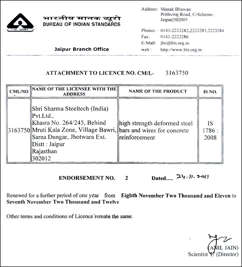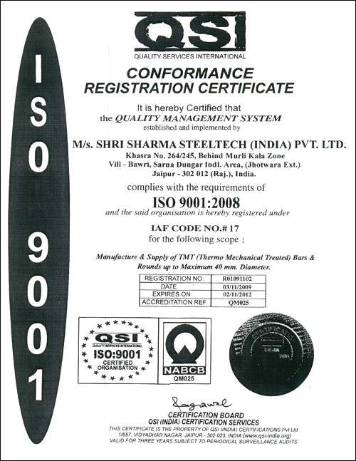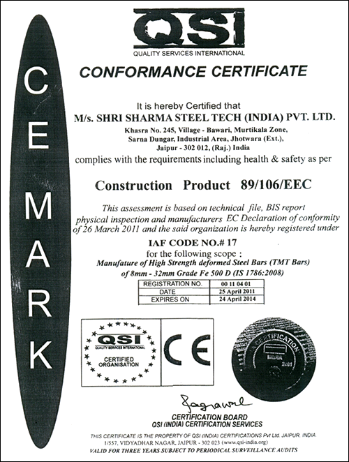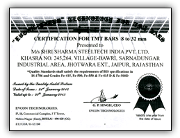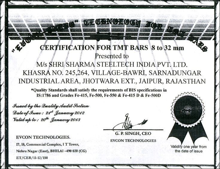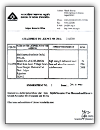 Certification for TMT bars 8 to 32 MM |